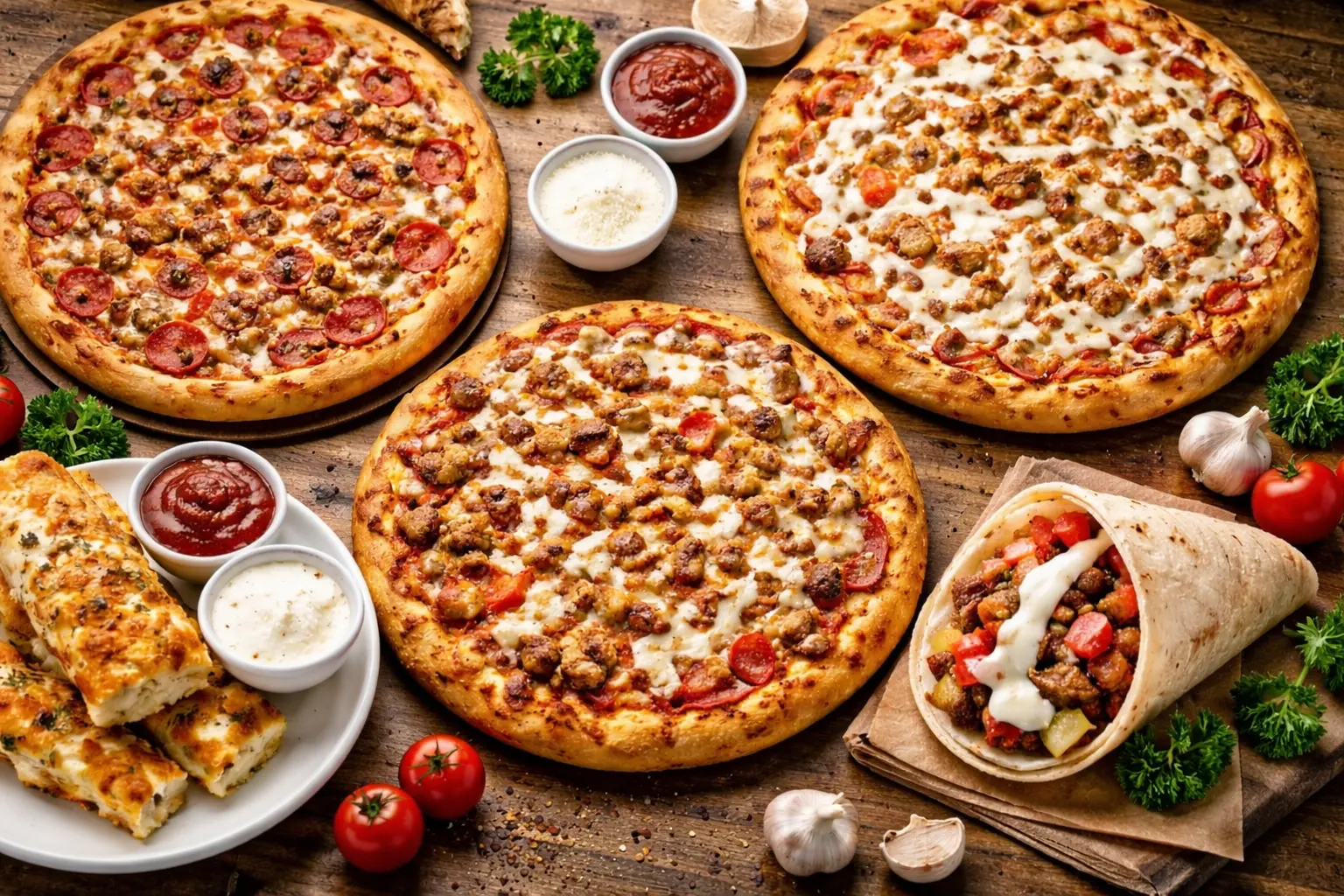 Discover our handcrafted favourites, made fresh daily with premium ingredients. From loaded pizzas to authentic donairs, every bite delivers bold flavour.